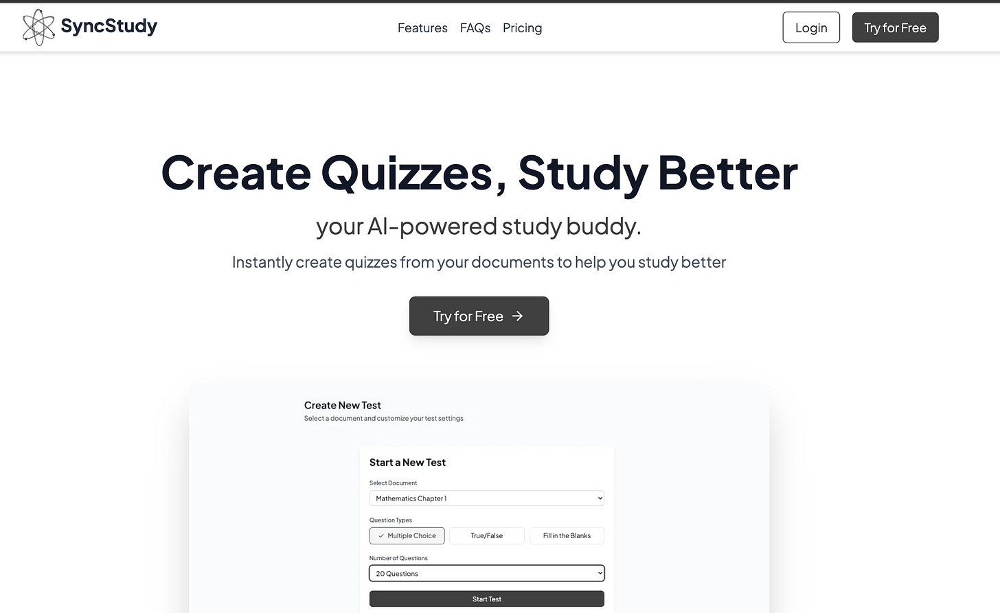 SyncStudy can help you study by analyzing your study material and generating intelligent quizzes. It generates different types of questions, including true-false questions and fill-in-the-gaps (or German, as we like to call them in Nigeria).